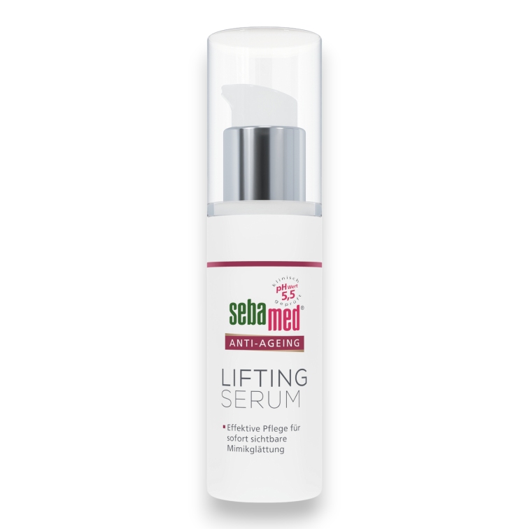 Nach dem Design-Relaunch, einer Rezepturoptimierung und zwei Produktneueinführungen im vergangenen Herbst, präsentiert die sebamed ANTI-AGEING Pflegeserie nun eine weitere Neuheit: Das sebamed ANTI-AGEING Lifting Serum erweitert ab sofort die Produktlinie und bietet eine innovative Pflege für eine lange strahlende und jünger aussehende Haut. Das sebamed Neuprodukt bewahrt die Festigkeit sowie Elastizität und die speziellen Anti-Ageing Wirkstoffe erhalten die Glätte und Spannkraft der anspruchsvollen Haut. Zusätzlich unterstützt der pH-Wert 5,5 die Schutzfunktion des natürlichen Hautschutzmantels gegen schädliche Umwelteinflüsse, die die Hautalterung beschleunigen. „Die Hautalterung unterliegt inneren und äußeren Einflüssen. Neben genetischen und hormonellen Faktoren haben Umwelteinflüsse wie Sonne, Klima, Luftschadstoffe oder Stress eine hohe Bedeutung für den Alterungsprozess“, erklärt Dr. Michaela Arens-Corell, Leiterin der Medizinisch-wissenschaftlichen Abteilung bei Sebapharma. Regelmäßige Pflege, die für einen Schutz der hauteigene Barrierefunktion sorgt und die Feuchtigkeitsbalance erhält, unterstützt dabei, ein frisches Aussehen zu erhalten.