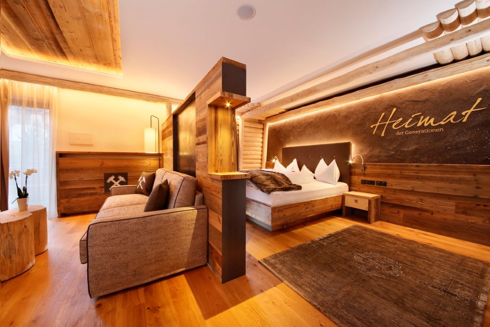 Eine Reminiszenz an die jahrhundertealte Bergbautradition – die der Region rund um Ridnaun, Südtirol, und die der Gastgeberfamilie Volgger.