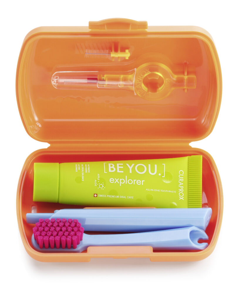 Eine einmalig kompakte Reisezahnbürste, 10 ml raffiniert frische Whitening-Zahnpasta und zwei Interdentalbürsten mit praktischem Halter. Das ist perfekte Mundhygiene, wo immer man gerade ist und dazu kompromisslos stylisch. Das Travel-Set misst nur 9,5 x 6 cm und passt sogar in die Hosentasche. Das Travel Set gibt es in den Farben schwarz, gelb, orange, rosa, rot, blau und grün.