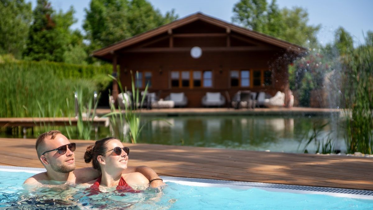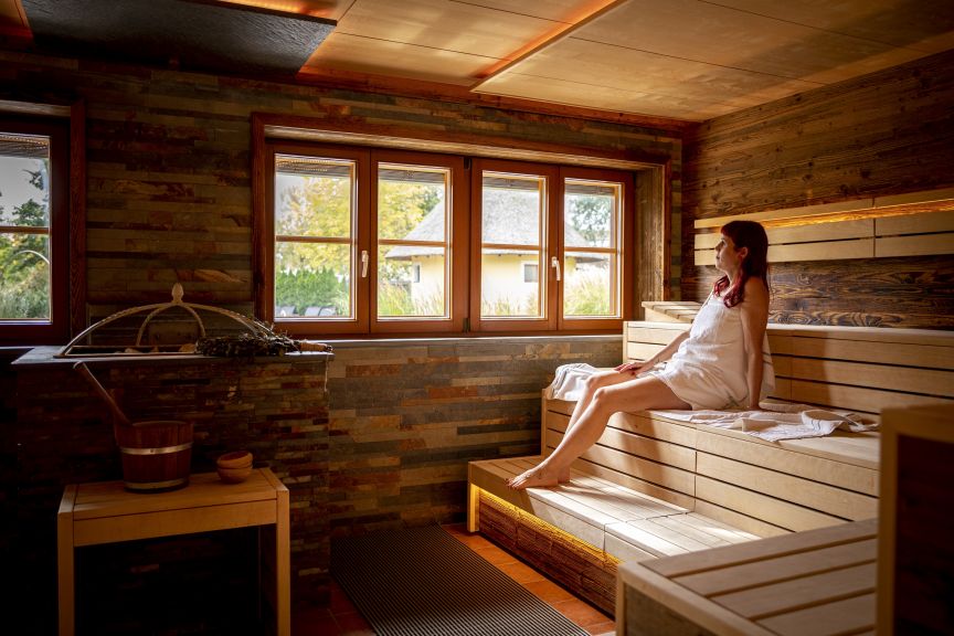 Der Saunabereich wurde mit einer sanierten Schilfhüttensauna und einer neuen Panorama-Selbstaufguss-Sauna zu einem einladenden „Saunadorf“ erweitert. Nach dem Saunagang lädt der wohltuende Ruheraum mit Lehmwänden dazu ein, die Seele baumeln zu lassen. Ein Highlight ist zudem der entspannende Relax-Pool.