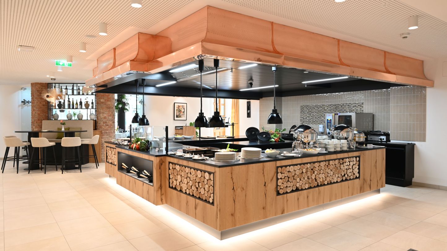 Ein Highlight der Renovierung ist das neugestaltete Hauptrestaurant. Hier können Feinschmecker aus einer Vielzahl von regionalen Schmankerln des Burgenlandes, internationalen Buffets und Gourmetküche wählen. Besonders beeindruckend ist das Familien- und Buffetrestaurant VITAVESTA, das nun in frischem Glanz erstrahlt. Mit einer großzügigen Buffetlandschaft und einer modernen Front-Cooking-Station bietet es noch mehr Platz für genussvolle Kreationen. Das neu gestaltete Restaurant besticht zudem durch viel Licht und eine stimmungsvolle Atmosphäre dank einer Kombination aus unterschiedlichen Naturtönen.