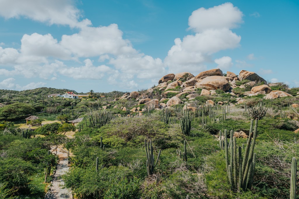 Die Insel ist von einer beeindruckenden Vielfalt an Flora und Fauna geprägt, darunter Kakteenlandschaften, exotische Pflanzen und eine bunte Unterwasserwelt. Der Arikok-Nationalpark bedeckt nahezu 20 Prozent der Insel und bietet Wanderwege zu einzigartigen Felsformationen und versteckten Buchten.Hier leben auch einheimische Tierarten, darunter der Aruba Cai, ein bunterPapagei sowie die Shoco-Eule.